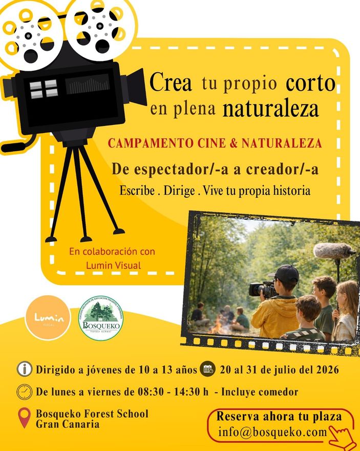 En nuestro Campamento Cine & Naturaleza, los/-as participantes se adentran en un proceso creativo real:investigan, escriben su propio guión, interpretan, dirigen y dan vida a su historia en contacto directo con la naturaleza.